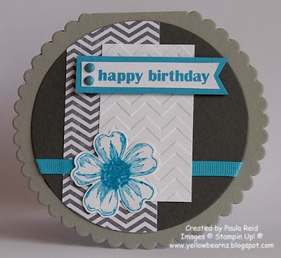 I love both the circle card and the note pad Paula, thanks for the sneak peek the other day!! I have never liked Tempting Turquoise and don't own any!! Having said that, CTD and your sample may have just changed my mind!!