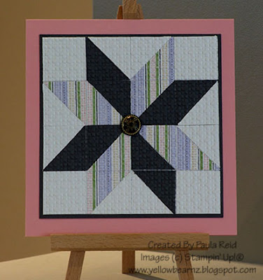It uses 1″ squares and is a great way to use up your scraps. I’ve used some retired Tea Party DSP. It was fun to make and Karen’s instructions are easy to follow.