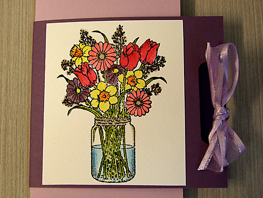 I saw the card design on Dawn Olchefske‘s blog and just had to have a go at recreating it. Her video turorial is great. The stamp I’ve used is one I got while on holiday in Christchurch recently. I really enjoy colouring in & this one lends to heaps of colour options.