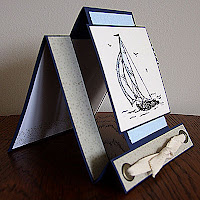 As promised here are the cards I made at SENZ on Saturday. I attended two classes – the first was with Bron Heslop and we made two cards using the a la carte stamp Sail Away. The first card was a fancy fold and the second was a twisted easel.