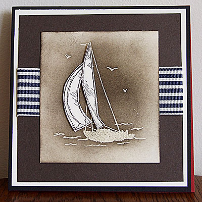 As promised here are the cards I made at SENZ on Saturday. I attended two classes – the first was with Bron Heslop and we made two cards using the a la carte stamp Sail Away. The first card was a fancy fold and the second was a twisted easel.