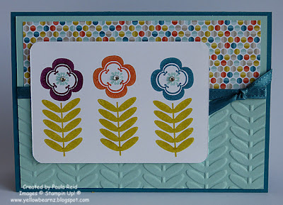 As promised here is a sneak peek at a card I made using some of the Sale-A-Bration products that will be available from 22 January.  There are 11 new products to choose from plus 6 products from the current catalogue – how cool is that.  Well on with the card.