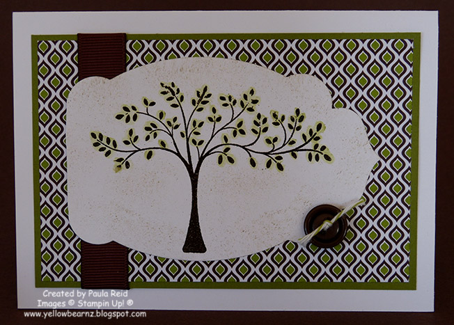 I needed to make two sympathy cards for work so used this layout for one of them. My ‘go to’ stamp for a masculine sympathy card is Lovely as a Tree – you can’t go wrong with this one. One of my favourite techniques for this set is to heat emboss it then add crayon or dauber with ink. This time I used Old Olive crayon applying it with a blender pen. It gives a subtle colour to the image. It’s a bit hard to see in the photo but I’ve used the retired core d’inations as the background that has been run through the Big Shot with the Woodgrain embossing folder – I love the textured effect it gives. I stamped the sentiment on the inside of the card which had the insert as a layer of Old Olive then Whisper White.