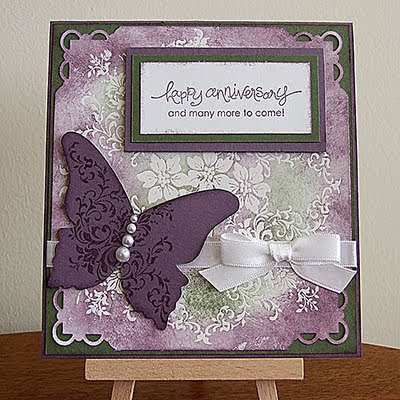 The photo doesn’t really do it justice. To be honest I wasn’t really a fan of Always Artichoke but have used it a couple of times lately and it’s starting to grow on me. I love the combination here with Perfect Plum. I had started this project last weekend and was able to finish it on Friday when I received my Butterfly die :)