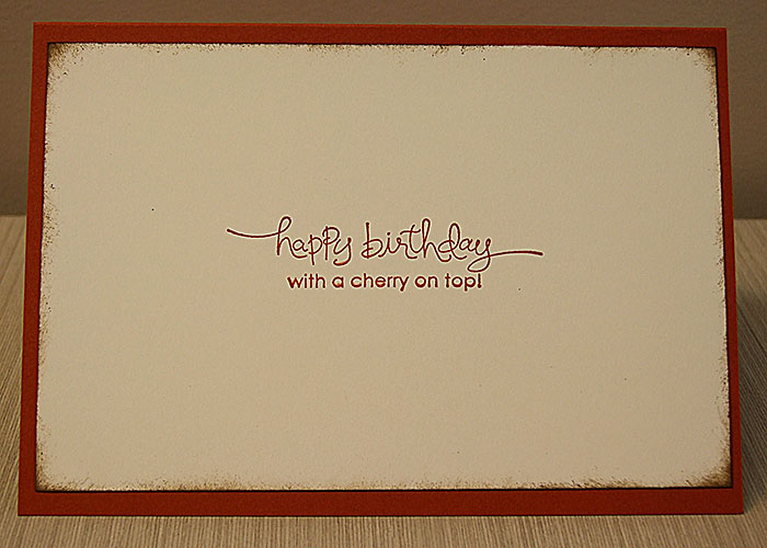 This was a great layout as I needed to get a card made for my BIL in Australia. The only stamping on this card is the greeting inside. My BIL is a chef so I used my Build A Cupcake punch to create a cake.