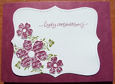 Since I took up card making Mum has also got hooked. Vintage Vogue and Rich Razzleberry are one of Mum’s favourite combinations (mine also) so it wasn’t hard to decide what to use for their card.